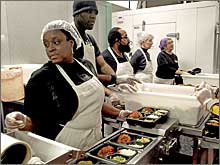 | Rob Saxon has to keep MANNA's meal production operations staffed with 75 volunteers a day. Click photos for larger image. | face as daunting a task as Robert Saxon. As Director of Volunteer and Resource Development at Metropolitan Area Neighborhood Nutritional Alliance (MANNA), he must find 1,500 volunteers a month to staff the food charity's factory-like operation.