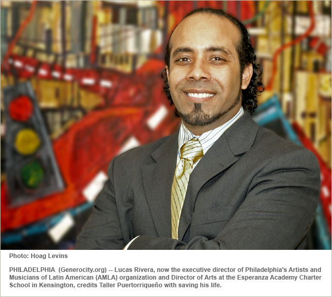 | Lucas Rivera, Director of Arts at Philadelphia's Esperanza Academy Charter School, credits Taller Puertorriqueño with saving his life. Click photos for larger image. | broken families? That's a question Taller Puertorriqueño has been trying to answer for the last 35 years.